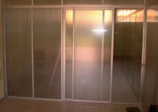 Predelenie priestoru v kanceláriách, halách, domoch a bytov, ponúkame deliace priečky z hliníkových alebo nerezových rámov. Priečky môžu obsahovať aj posuvné dvere odsúvateľné na kraj alebo od stredu . Posuvné dvere sa pohybujú na spodnej vodiacej koľajnici v bezbariérovej úprave s mohérovým tesnením. V prípade potreby sa dajú jednoducho vysadiť a zväčšiť svetlú šírku otvoru. Výplne môžu byť polykarbonát Lexan* alebo rôzne typy skla podľa želania zákazníka.